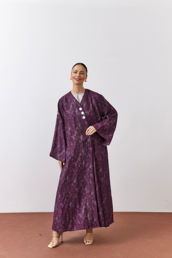 عباية بكسرات امامية وخلفية بقصة التربل كلوش مع قماش شيفون بطبعة مميزة باللون البني الداكن ✨🤎 ممكن ان تتسكر بطقطق