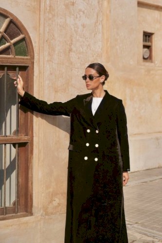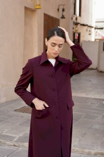بليزر رسمي مبطن بالكامل باللون الرصاصي الفاتح مع قصة عند الخصر وحزام جانبي مع ازرار ميتال القماش خفييف جداً وناعم صناعة بريطانية